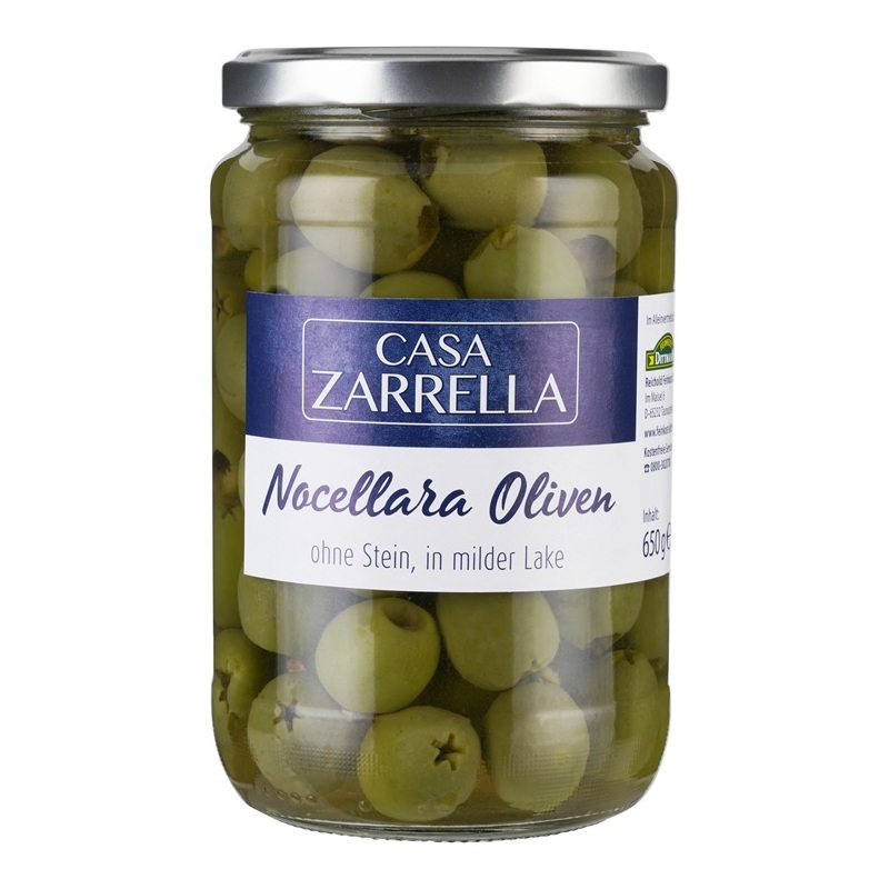 Produktinformationen "CASA ZARRELLA NOCELLARA OLIVEN GRUEN OHNE STEIN 650G"