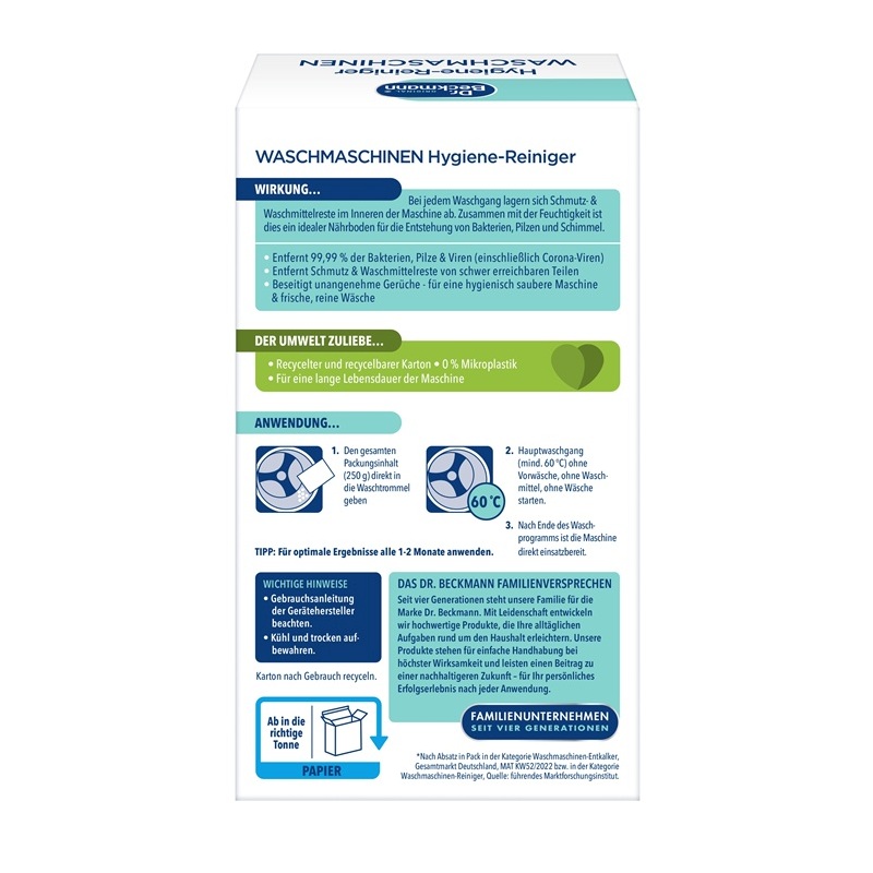 Produktinformationen "DR. BECKMANN WASCHMASCHINEN HYGIENE - REINIGER 250G"