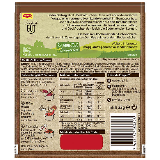 Produktinformationen "MAGGI FIX CHILI CON CARNE 33G"