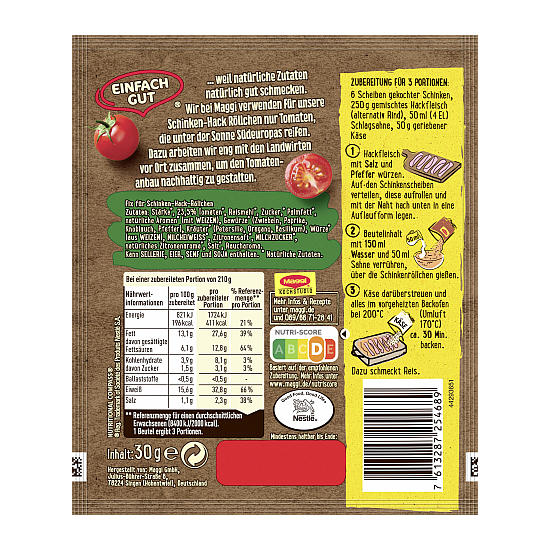 Produktinformationen "MAGGI FIX FUER SCHINKEN - HACKROELLCHEN 30G"