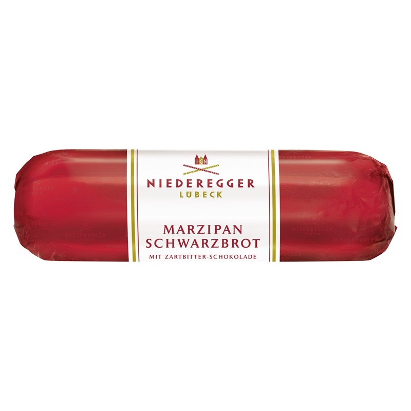 Produktinformationen "NIEDEREGGER MARZIPAN SCHWARZBROT MIT ZARTBITTER - SCHOKOLADE 200G"