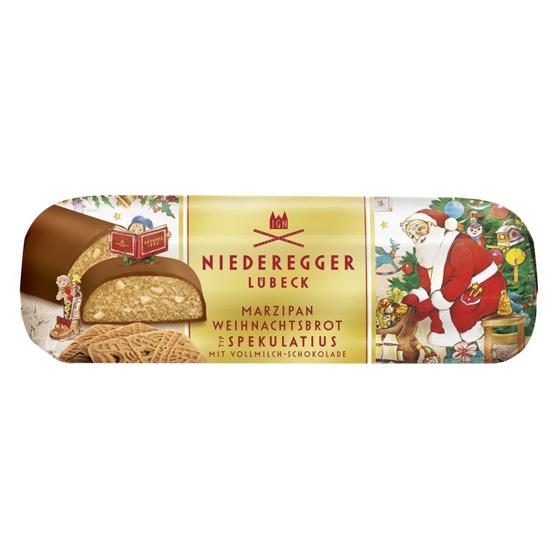 Produktinformationen "NIEDEREGGER MARZIPAN WEIHNACHTSBROT TYP SPEKULATIUS MIT VOLLMILCH - SCHOKOLADE 125G"